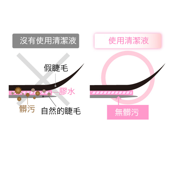 徹底清除粘在睫毛上的油脂與髒污。因此能改善黏附度,並提升作業速度。